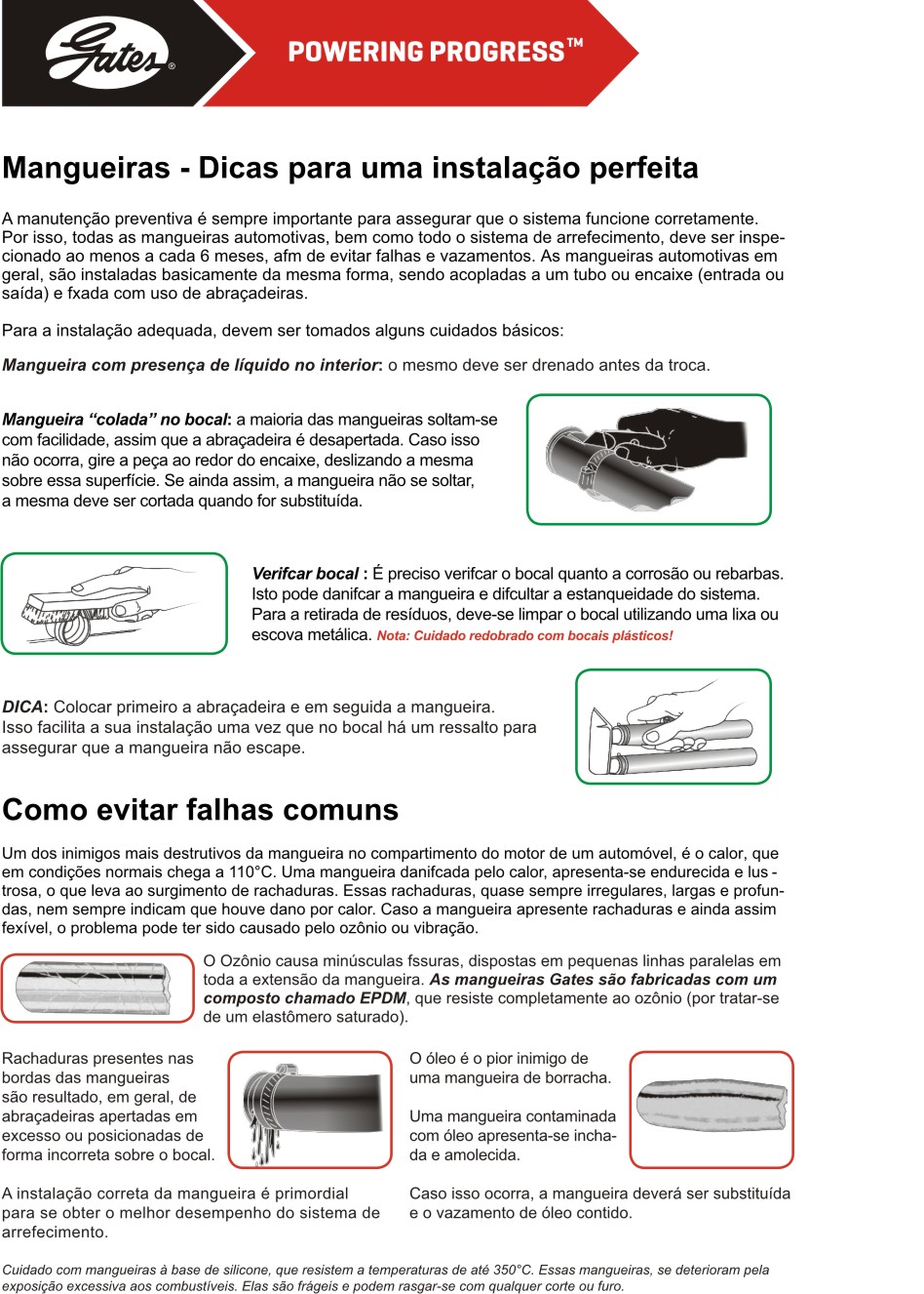 Nas opções ao lado, encontre informações completas de instalação e dicas de manutenção para correias, mangueiras e terminais para aplicações industriais.
