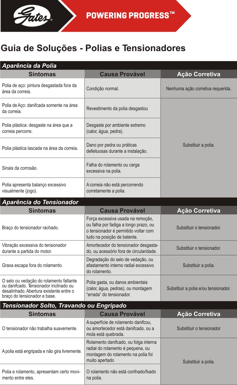A Gates, ao longo de mais de 100 anos de história, entende que a qualidade de seus produtos é percebida quando a instalação e manutenção dos mesmos é executada de forma correta. Encontre nessa seção: treinamentos, dicas para armazenagem, instalação, manutenção e diagnóstico de nossos produtos.