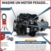 Descritivo geral da linha de correias para veículos pesados, aplicações e outras informações.